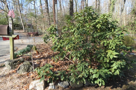 Our “walking” rhododendron is doing well and budding up. It should be beautiful again this year. This shrub was here when we bought the house but it was right up behind the mailbox and about the same size as it is now. For several years, it grew nicely and we took photos every year with me standing beside it so we could see how much it was growing. Then, one year after a big snow, a large branch broke and laid down to the ground and we figured the lower side would be done for and just die away.