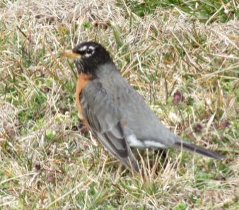 Moving on to the afore-mentioned robins, I got this photo as I headed out the backdoor for my venture walking the yard. He is a handsome bird showing his white spectacles clearly in this photo. I wonder if you all have noticed more robins this winter. It is difficult to think of robins as heralding spring when they have spent all winter with us and have been mobbing the yard in packs picking holes in what little grass we have. But I bow to wiser folk before me who opted to think of robins as a spring bird. Perhaps, they lived further north where robins tend to disappear during winter months and only show up in spring when there is a possibility of worms creeping along just under the frozen topsoil.