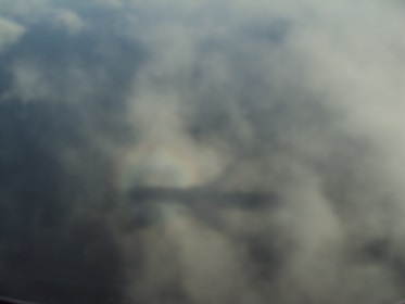 Later, in crossing over thick cloud cover, I notice the shadow of our plane reminding me that, not only is the earth a fragile vessel