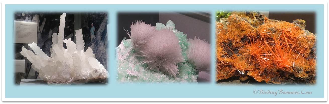 Not wanting to leave exactly yet, I suggested that we look in on the gems & jewels exhibit and strolled into what I thought was the gem display area. My husband kindly advised me that I had wandered into the souvenir shop for gems and was not actually in the display area. (Silly me.) But that tells you how big the place is overall…..the souvenir shop was pretty danged big. We found the Rocks and Gemstones area and spent some time meandering through the exhibit. We would have been there hours had we stopped to read every sign or look at every rock or crystal or gemstone in the place. We did stop to touch the oldest known rock (gneiss) on Earth at 3.96B years old. (And, yes, you can touch it – look at the sign beside the rock. It says “please touch”.)