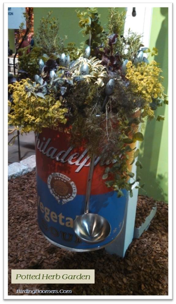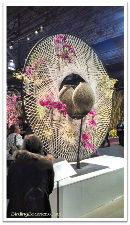 Glo’s favorite: There was a display with giant balls covered and filled with organic materials – seeds and petals and nuts and leaves – and arranged into colorful displays. Glo has giant vine-woven balls in her garden already so I fully expect to see giant hoops and circles and balls covered with dried flower petals in her flower beds the next time I visit her garden.