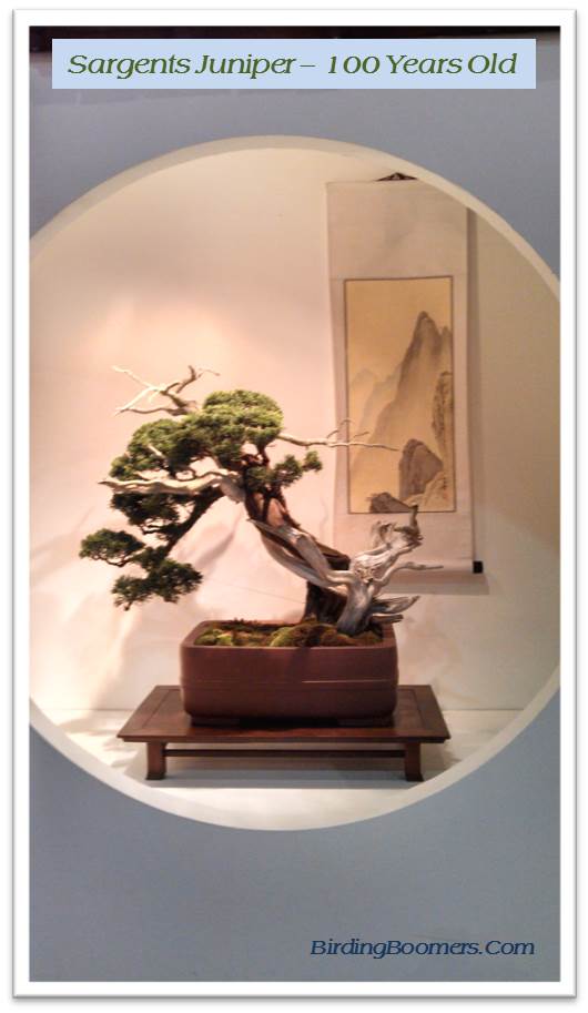 And there were the bonsai. I am always captivated by these small trees and the age of some of the trees. This is a hobby that is a lifetime commitment. Some of the trees have been in “training” for decades. I suppose the bonsai artist (hobbyist? technician?) is really the one in training for all those years because it seems as if they are always perfecting the tree notwithstanding that they always look so perfect to me.