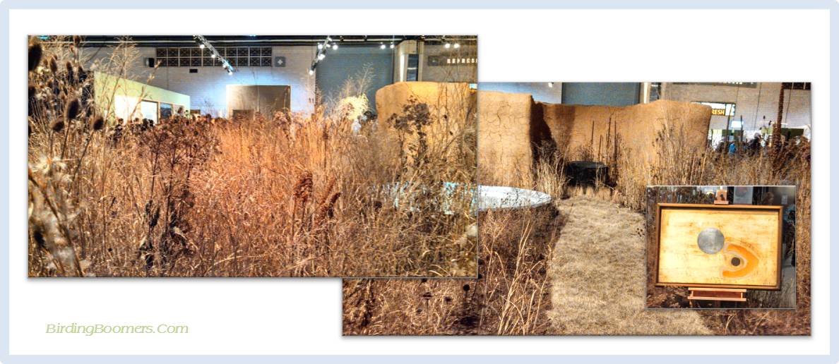 I cannot begin to describe all of the beautiful exhibits but I will tell you about my favorite from the show. Okay, one of my favorites. There was a section of landscaping exhibits that were inspired by paintings. The exhibit included the painting so that you could see the inspiration piece and decide how well the exhibitor captured the art in the display. It was also one of the more controversial ones, I suppose. It showed what I would call a winter garden. Every gardener knows the value of having good “bones” in the garden and including those structural elements that add interest to the garden in winter. But this exhibit took that a little further and appeared to feature the beauty in winter-dead plants in the garden. I loved it. I am notorious for not cutting down dead plants until spring. I like the look of golden grasses and seed heads and I also like that birds love those seed heads and hiding in the grasses during the winter. The neighbors might not approve and see nothing more than dead things when every brown stem is not cleared from the yard in autumn but I like it. One other thing to consider – it is not unusual to see a floral arrangement with bright blooms but imagine that someone took the time to “arrange” dead grasses and thistle and milkweed in about a 20X20 foot space to make it look like a lovely winter meadow. To me, that was amazing. Do you suppose they just went out to a field and took up the sod with the plants intact to create the space? You never know with these displays.