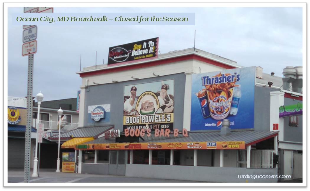 AI Sunset Wrap More often than not, I find myself birding in the middle of winter….and not just occasionally. My husband and I do quite a bit of birding in the winter months.  It seems to perplex our friends and family sometimes that we would pack the car and take to the road heading for the Atlantic Coast beaches in the middle of winter. So I took a little time and have compiled a list of ten good reasons we bird in the winter time.  Of course, all good “Top Ten” lists start at the bottom with number 10. ferry10:  You don’t need reservations on the Cape May Lewis Ferry.  Once you are on board, you do not have trouble finding a good seat in the observation salon.  If you want to check out the birds at Cape May, you can either take a nice relaxing ride on the ferry or you can make the three hour plus drive around the Delaware Bay by car. And you can look for sea birds and migratory birds while making the ferry crossing. A few years back, we had wonderful views of Northern Gannets as they crossed the Bay on their trip south. This year, we took a later ferry and missed the birds but got wonderful views of the sun setting on the Bay. On the other hand, the car trip around the Delaware Bay is not so bad either. There are quite a few birding hotspots along the way so you really cannot lose no matter which way you get to Cape May. vista9: Along the same lines, you can usually find the “Vacancy” light on at hotels along the way.  Well, scratch that, “hotels” and make that “hotel” – singular.  If you stay on a main road like, say, Interstate 95 or Delaware 13, you can usually find a Holiday Inn Express or a Sleep Inn, but once you get off the main roads, you begin to have some problems finding hotels that are open all year round. And, once you get to the shore, you are even further from a good night’s sleep if you did not plan in advance and know where you’re going to stay for the night.  One year, we found ourselves in a hotel where we were the only occupants in one large spooky section of the hotel.  I could not sleep a wink because I kept waiting for Jack Nicholson to come creeping down the hallway saying, “I’m here!” just like in the movie, The Shining1. As you can imagine, I was quite ready to move on the next morning.  More recently, we rolled into Cape May just about an hour after dark on a cold damp evening to find that the town was pretty much closed for the season, as expected. I had heard that a hotel called La Mer was open through Christmas so we called ahead and, sure enough, they had a lovely waterfront room available at a very reasonable price. We had no idea what we’d find when we arrived but it turned out to be a lovely hotel. And, much to my relief, there were other people staying there.  We had a beautiful ocean view from our balcony although it was way too cold to spend much time sitting out admiring that view. Likewise, we found a great oceanfront room at the Holiday Inn Express in Ocean City, Maryland – a suite, in fact, at a price that was unbelievable. OC Boardwalk8:  The beaches are empty:  Of course, if you take a blanket to the beach, you have to wrap up in it rather than sit on it. There are very few people enjoying the beaches in the winter time. There are fishermen strewn along the beaches but, for the most part, the beaches are deserted. This goes for parks and refuges and preserves too.  Places that would be packed with people in the good ole summertime are beautifully empty in winter. Well, empty except for the birds and other birders and nature enthusiasts.  I will be the first to admit that it is way too cold to go swimming unless you’re a bird, of course, and most of the birds on the beach are gulls but, hey, give it a go. It is a great time to work on your gull identification skills. And, you never know when something rare will fly in from the sea and make you trip all the more memorable. On the down side, I do have to say I am not crazy about all the hunters in the National Wildlife Refuges (NWR). I have nothing against hunters in general. I grew up down in north Georgia and I am no stranger to eating a little venison. Hunters who kill to feed the family are okay by me…..although by the time you factor in the rifle, the bullets, the truck, and maybe the dogs, the price for a pound of meat goes up considerably.  But, continuing with my thoughts on hunting, there is just something “not quite right” about hunting on a wildlife refuge. The whole name of the place sounds like a place where animals can be safe from predators with rifles and shotguns. And, yes, I know about deer population growth and management of the herds…and I know that hunters buy most of the duck stamps and hunting licenses that help financially support the refuges and preserves….but somehow knowing all that doesn’t offset the emotional mindset that people should not be killing animals in a “refuge” or “preserve”. duck stampBut, let us pause for a “station identification and a word from our sponsor”.  Let’s talk a moment about duck stamps.  Duck stamps are issued by US Fish & Wildlife to hunters for a small fee ($15).  A hunter will add the “stamp” to his/her license to show they are allowed to hunt waterfowl – ducks and geese mainly. I suppose a hunter could shoot a Coot but am not really sure if the license only covers certain waterfowl or even if anyone would be interested in killing and eating a Coot.  But then again, I have heard of hunters killing and eating Bobolinks and Sparrows even though I cannot fathom why someone would go to so much effort to kill such a little bitty bite of food…..really, how many sparrows would you need to kill for one meal?  (Guess it depends on how hungry you are.) But, back to the duck stamps which are bought by hunters and, in the past, that meant it was the hunters who were providing a revenue stream for the refuges. According to the USFWS website, ninety-eight cents