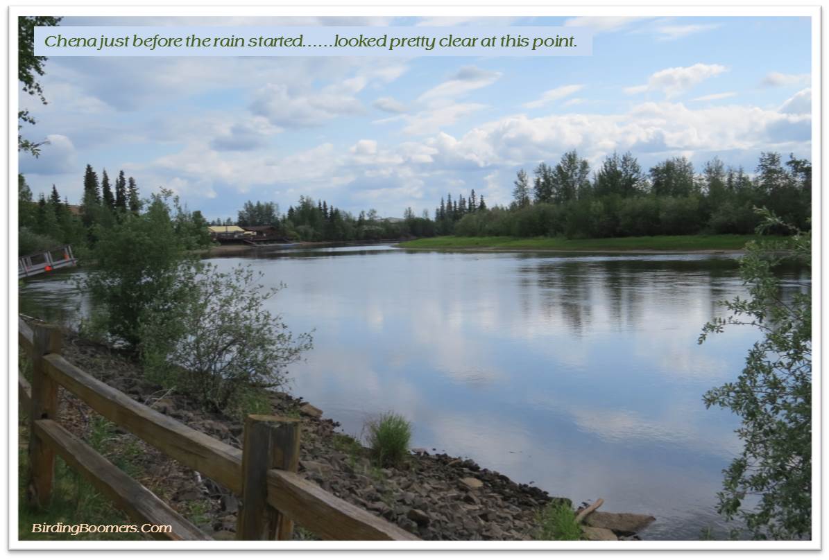 So, after almost twenty-four hours in the air and airports, we arrived in Fairbanks. When we arrived, the sky was cloudy and a bit overcast but the temperature was good and, while most of our extra day was gone, we still had a few hours before we met up with the tour group. Great! We got to the hotel, got settled in, and grabbed lunch. We met a great couple from Cape May, NJ at lunch that had just finished up a tour and were taking a couple days before heading home. They turned out to be birders too (of course, considering they were from Cape May) and regaled us with stories about the birding and adding thirty-three life birds to their list while on the tour and cruise and gave us some info about a couple sites right there in Fairbanks and how to catch the shuttle bus to get to the sites. All good….so far. By the time, we got back to the room to get our binoculars and cameras, the rain was falling……and falling….and falling….steady, hard, and continuous. So, the birding and most exploring outside was out for the day.