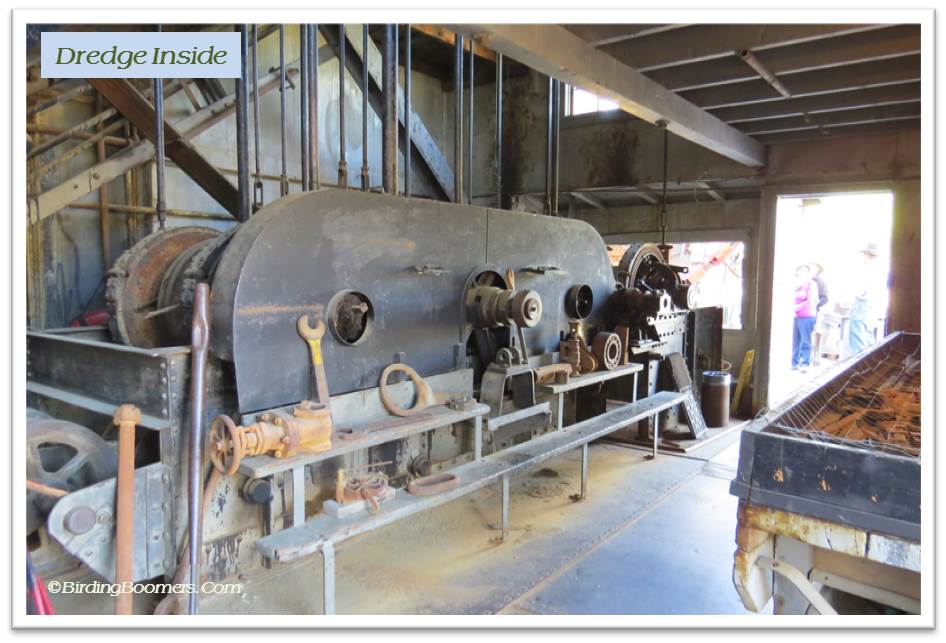 But the dredge itself was the star of the show. And after a short presentation, we actually got to go onto and inside of the dredge and take a look around. Now, if you think I enjoyed this, you have no idea how much Jerry enjoyed it. After all, he is a man and most men love machines… especially gigantic machines. We looked at all the cogs and gears and wheels and buckets and talked to the onsite guy who had all the answers and inspected everything….at least once, some things maybe twice. I am so ready now for the next season of Gold Rush Alaska….I got all the information I need and then some. (If you click on that link, you’ll see a photo of Tony Beets right there on the front page and, to see the recap on the dredge relocation, click here.)