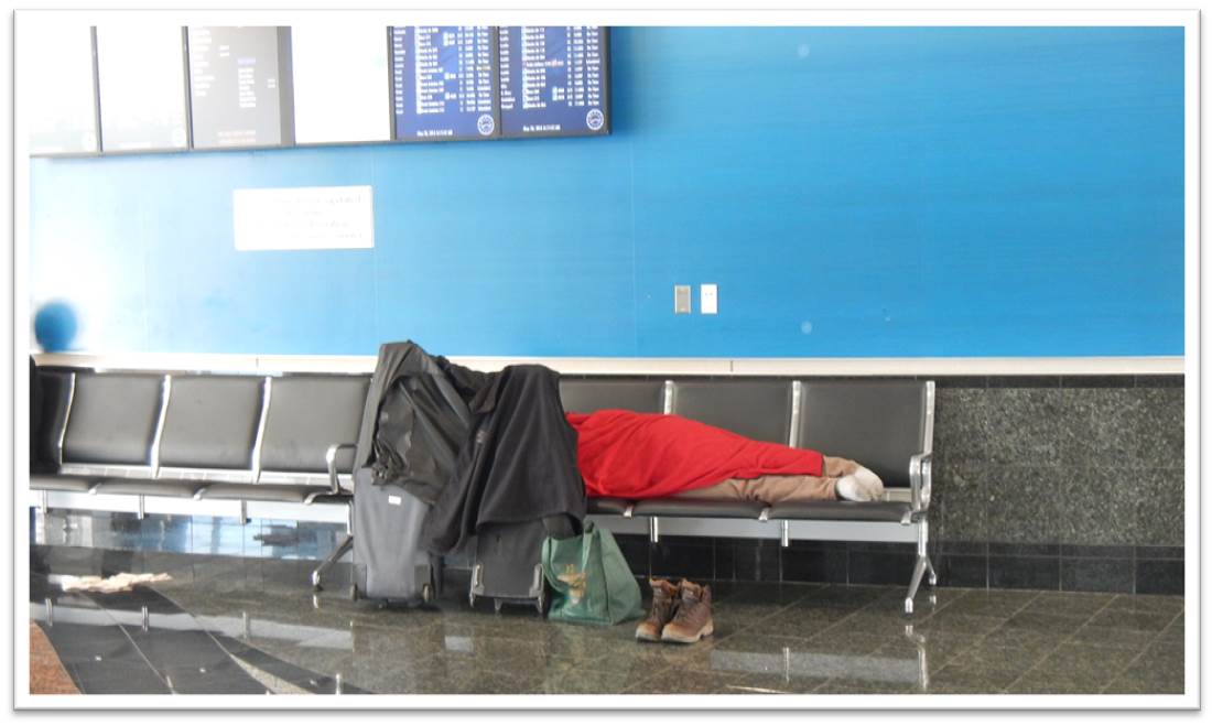 So there were “sleepers” scattered around the airport. Yes, I have seen people sleeping in other airports when flights are delayed around holidays and such but rarely do I see them so much anymore. In Alaska, they really settle in and get comfortable….not just slumped over in those uncomfortable seats….but boots off, laid out comfortable. Well, if you’re delayed and need the rest, might as well join them.