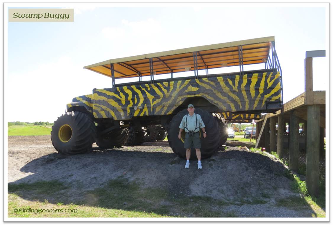 Now, on to the swamp buggies. Down near the Everglades, back in the day (who’s day I am not sure but it was way before my time and maybe around the time they started building the Tamiami Trail), a mode of transportation was developed for riding through and working in the Everglades. The vehicle they came up with sort of looks like a jeep with big, big wheels – humungous wheels….you know, tall enough and thick enough for driving through the tall sawgrass and swampwater in the ‘Glades (aren’t you now impressed with that?…just picking up the local slang). So I had seen these behemoths and I wanted to ride one of them. It was right up there on my list with riding on one of those flat john-boats with the big fans on the back that Jerry now tells me are more properly called airboats.