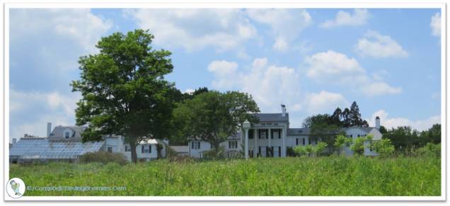 That’s because we had started in the gardens and roamed around a bit in the sun and then rushed up the hill to the house for the tour….where I arrived hot and exhausted. I found that standing in one spot listening to the docent talk didn’t work out too well for me or my aching, arthritic joints. So, I considered……I could further sap my strength and aggravate my back and hip standing listening to the docent….or I could find a cool spot to sit and save myself for the rest of the gardens.